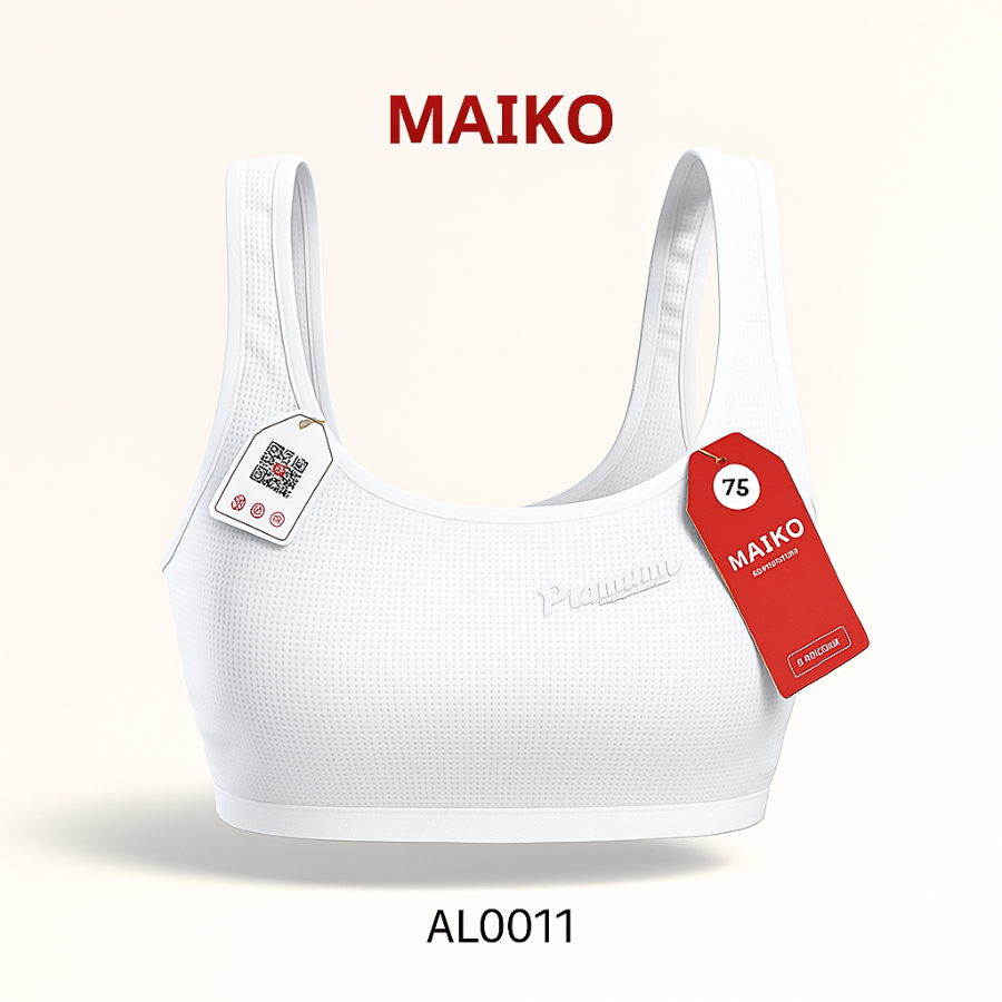 Sẵn sàng đáp ứng nhu cầu của khách hàng, MAIKO tiếp tục ra mắt mẫu sản phẩm bra teen với chất liệu modal thông hơi, mềm mịn và thoáng khí, mang đến cảm giác nhẹ nhàng, thư giãn. Đệm may liền tinh tế, kết hợp thân áo bản to hơn, ôm gọn mà vẫn thoải mái. Màu trắng tinh khôi, dễ dàng tỏa sáng, là sự lựa chọn lý tưởng cho các bé tuổi teen muốn vừa đẹp vừa tự tin!