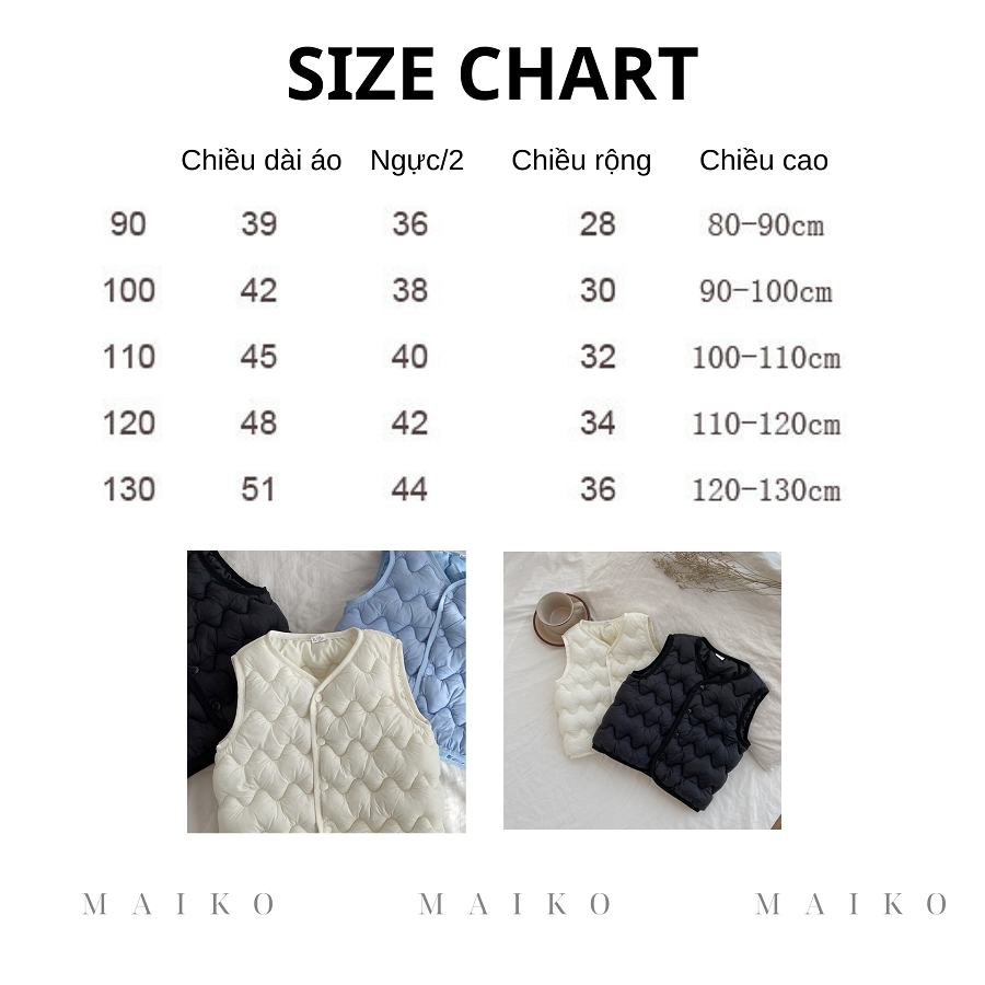 - Bảng size tham chiếu:
