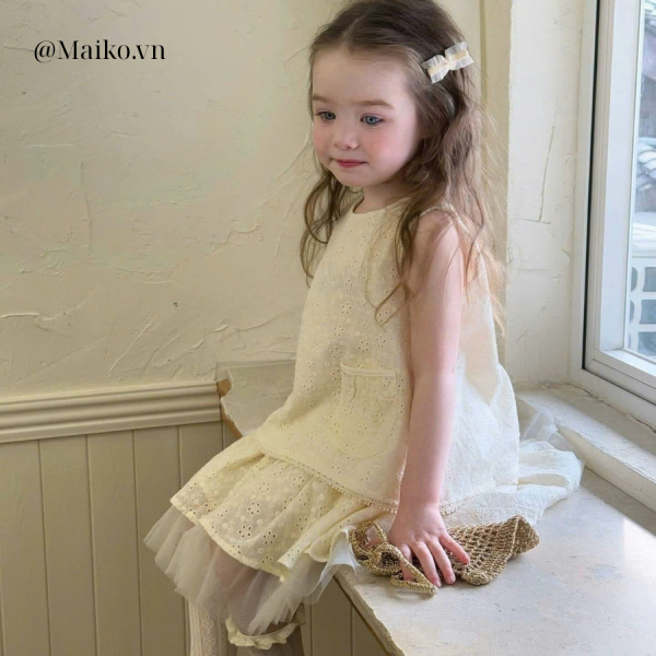 Cạp chun co giãn 4 chiều dễ mặc, có lót quần chân váy giúp bé tự tin hoạt động