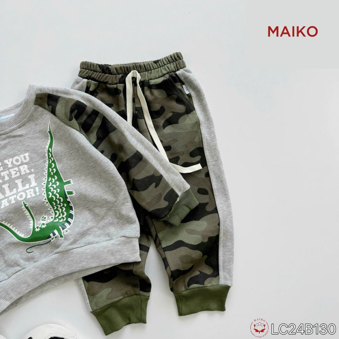 Bộ bé trai rằn ri cotton da cá in cá sấu