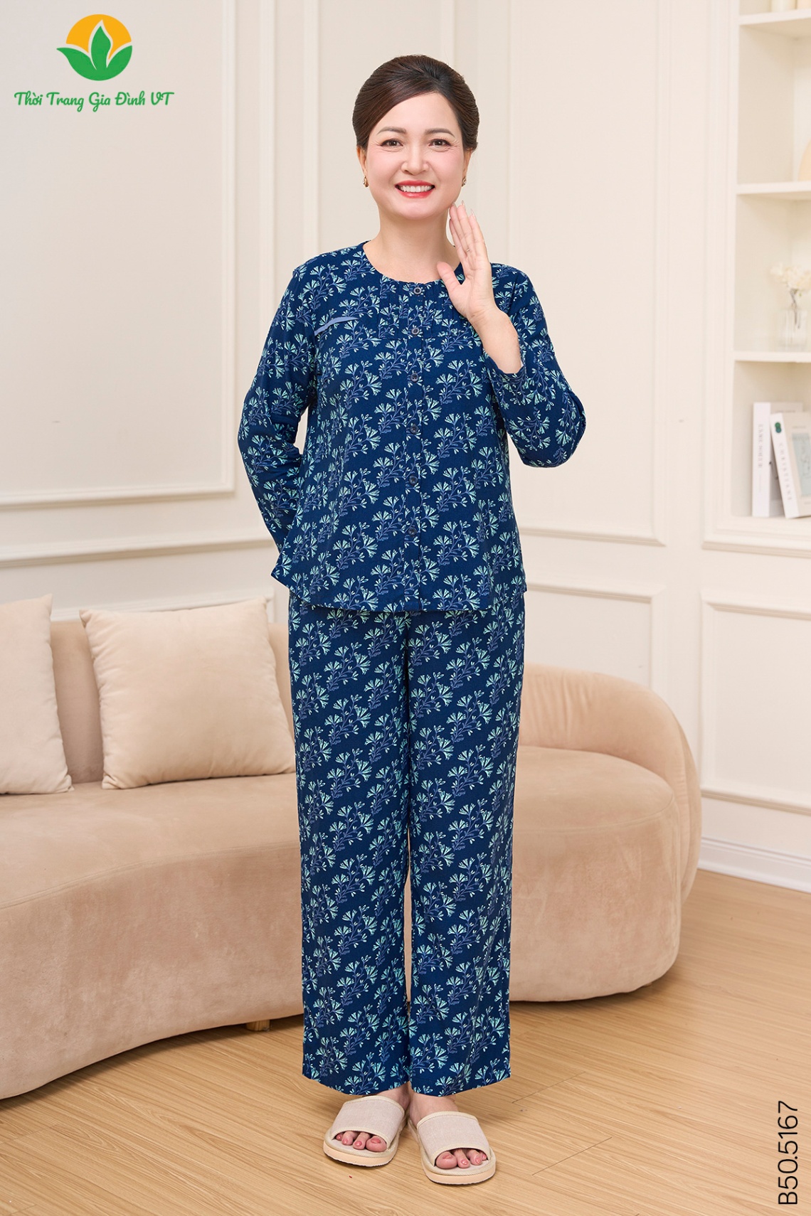 Bộ cotton rayon trung niên quần dài áo dài tay