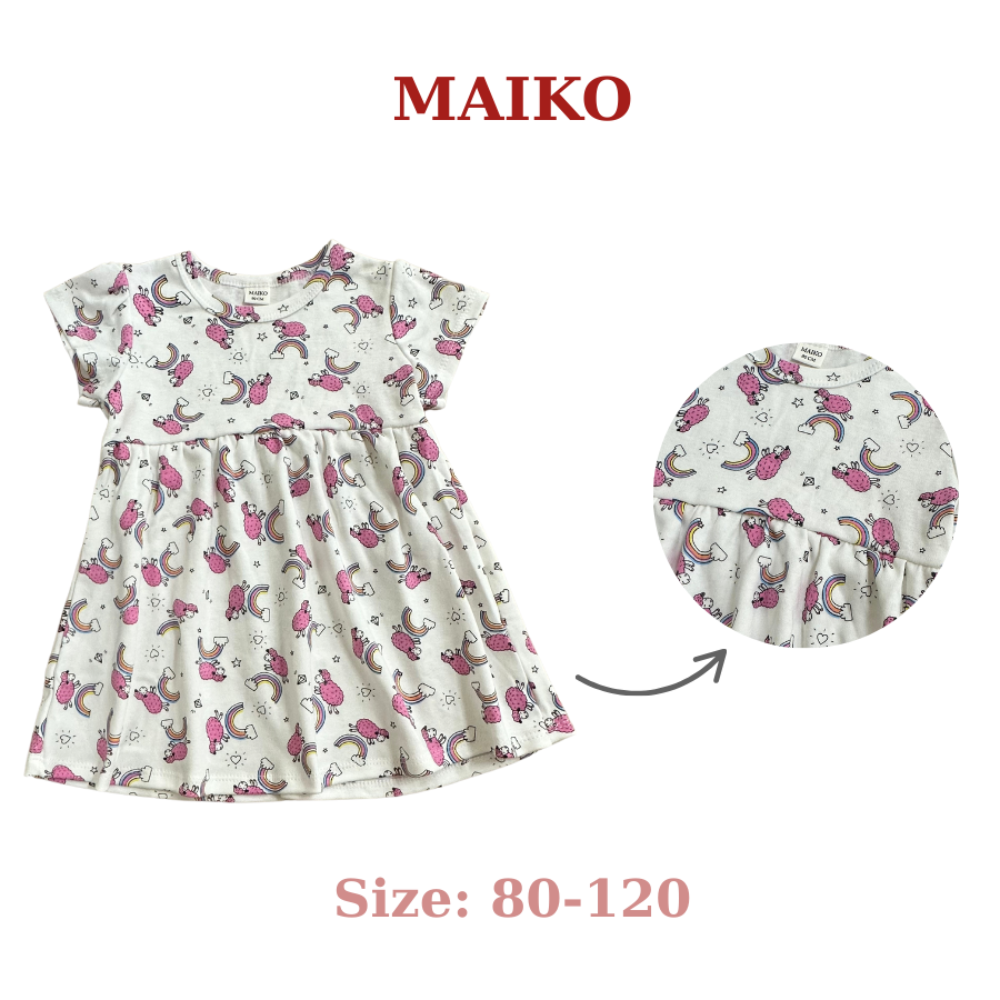 Váy Cotton in họa tiết màu sắc cho bé gái mùa hè 2025