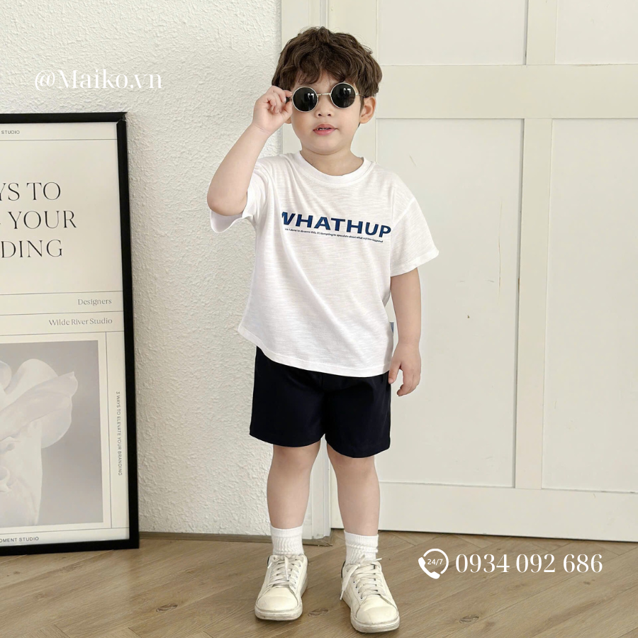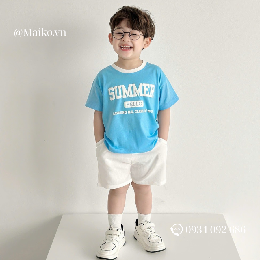 Nếu như bé gái yêu thích pastel nhẹ nhàng, thì bé trai lại gây ấn tượng với phong cách thể thao cá tính Athleisure. Những thiết kế áo phông, quần jogger, quần sooc, set thể thao từ MAIKO mang đến vẻ ngoài năng động, khỏe khoắn, phù hợp cho cả khi bé ở nhà, đến lớp hay tham gia các hoạt động ngoại khóa.